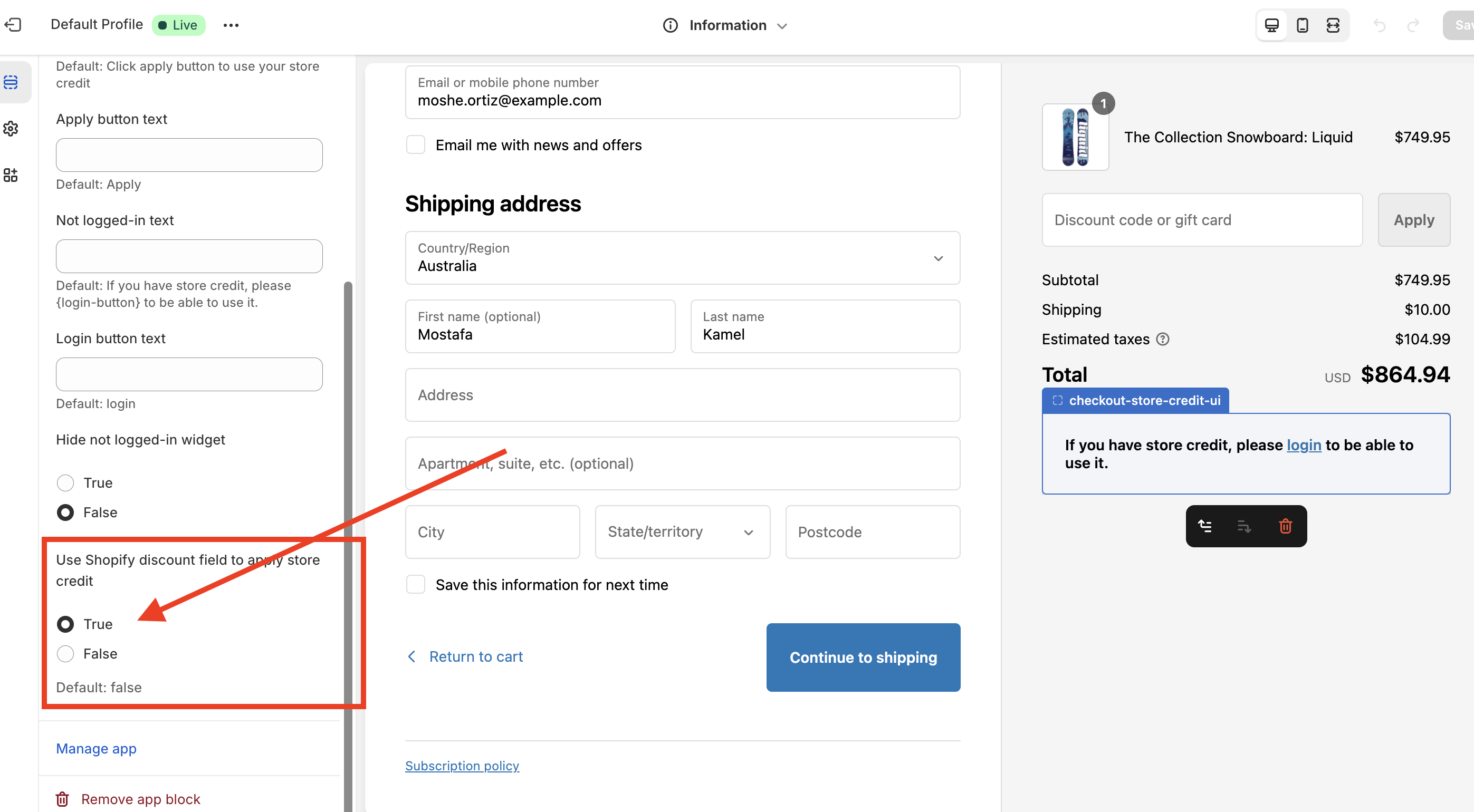 In the checkout customization screen